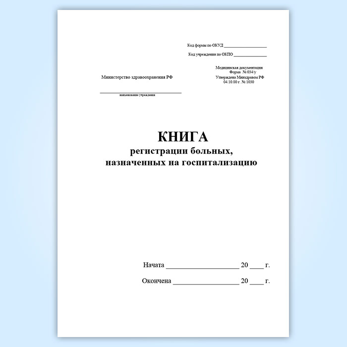 Книга регистрации больных, назначенных на госпитализацию (форма 034/у) в Обнинске купить