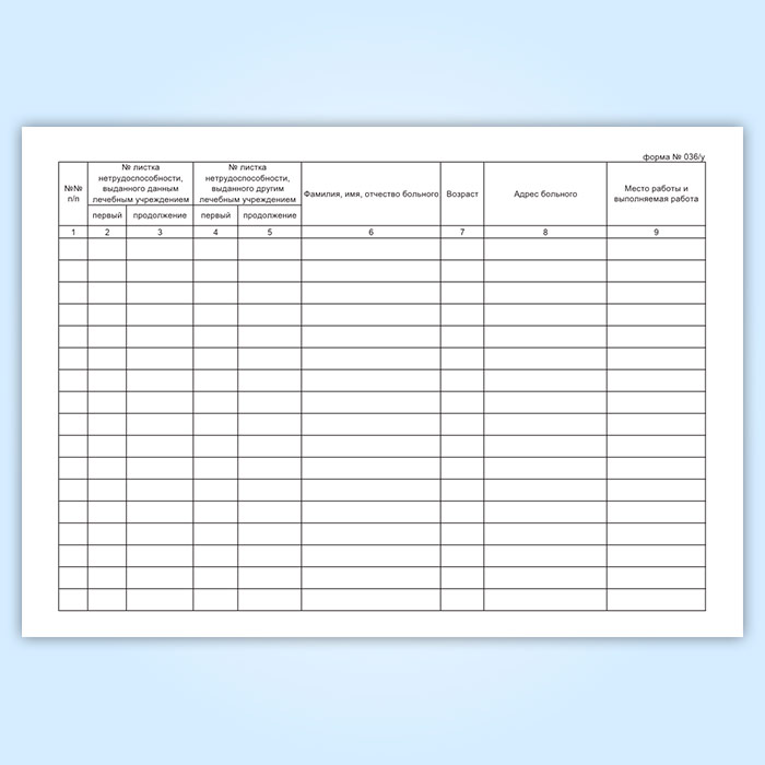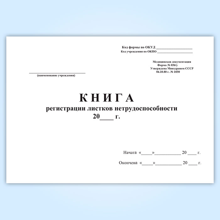 Книга регистрации листков нетрудоспособности (форма 036/у) в Обнинске купить