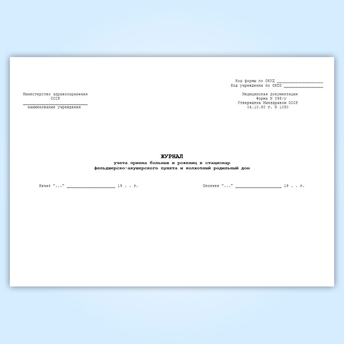 Журнал учета приема больных и рожениц в стационар фельдшерско-акушерского пункта, колхозного родильного дома (форма 098/у) в Обнинске купить