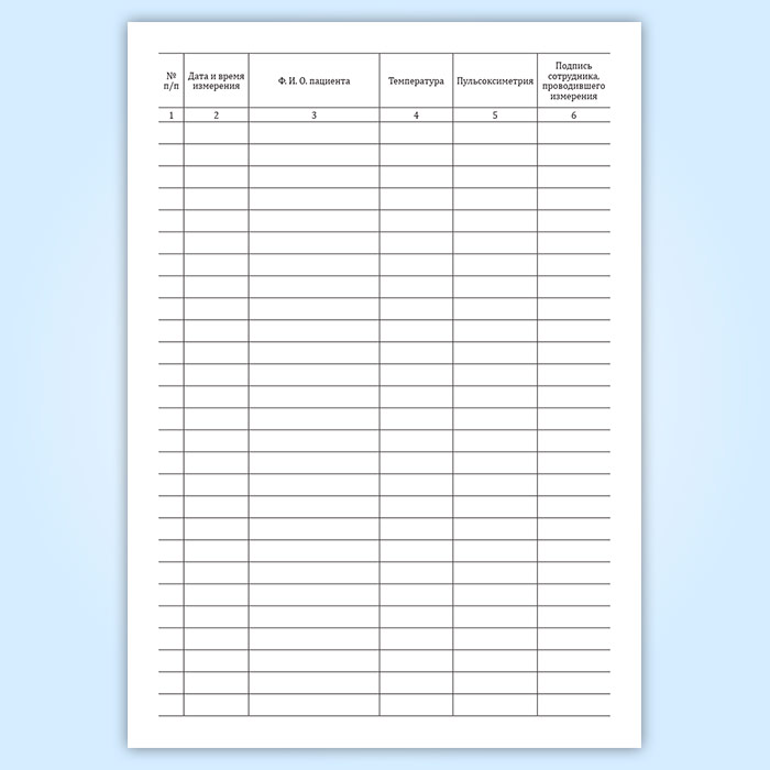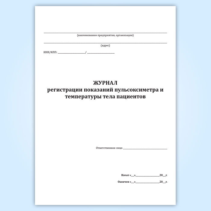 Журнал регистрации показаний пульсоксиметра и температуры тела пациентов в Обнинске купить
