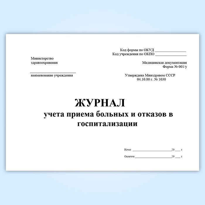 Журнал учета приема больных и отказов в госпитализации (форма 001/у) в Обнинске купить