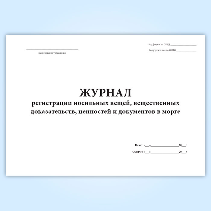 Журнал регистрации носильных вещей, вещественных доказательств, ценностей и документов в морге (форма 191/у) в Обнинске купить