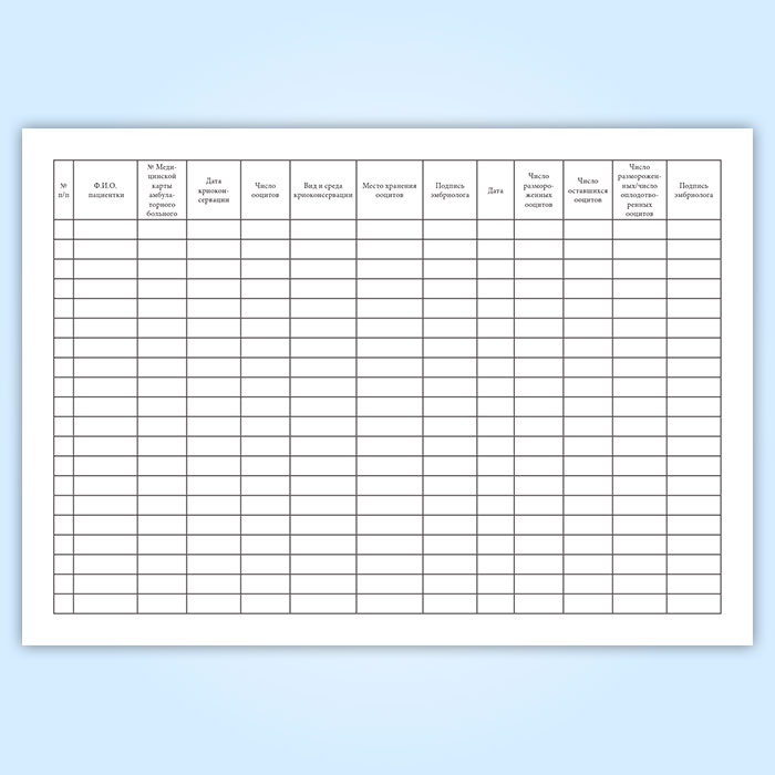 Журнал учета, хранения и использования криоконсервированных ооцитов пациенток в Обнинске купить