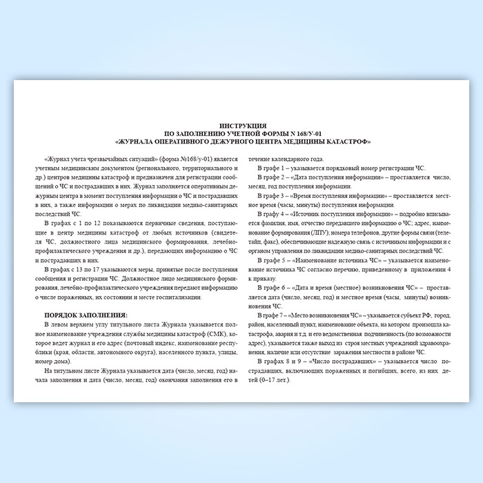 Журнал оперативного дежурного центра медицины катастроф (форма 168/у-01) в Обнинске купить
