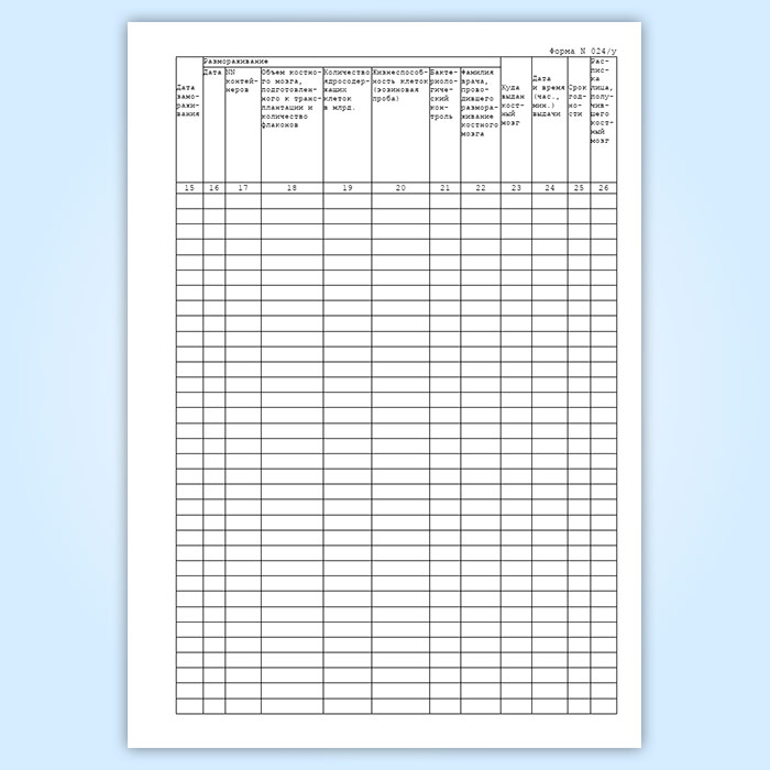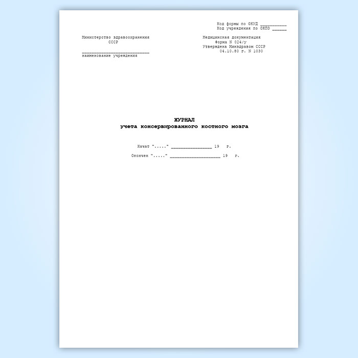 Журнал учета консервированного костного мозга (форма 024/у) в Обнинске купить