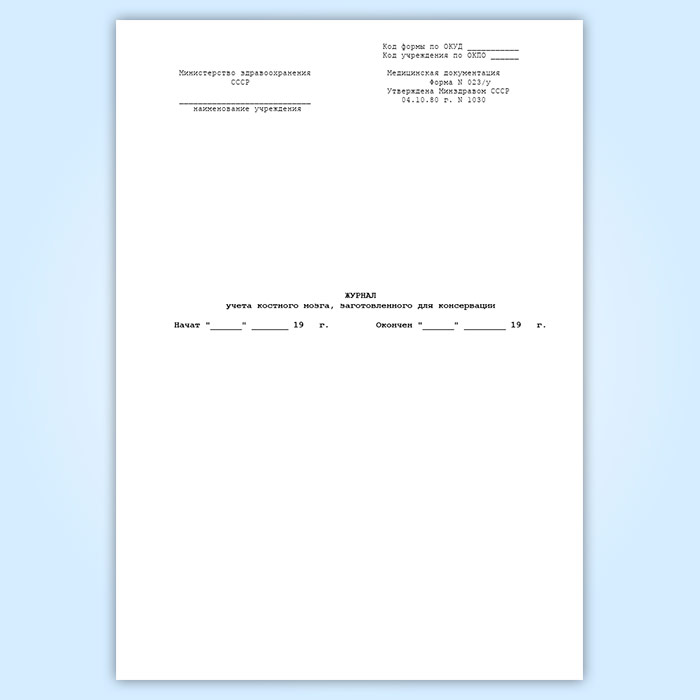 Журнал учета костного мозга, заготовленного для консервации (форма 023/у) в Обнинске купить