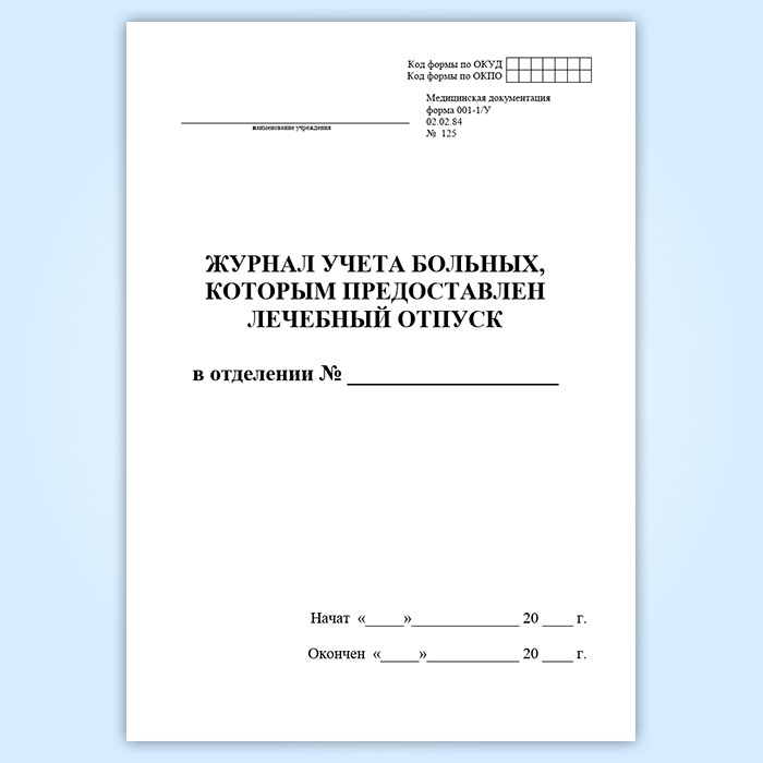 Журнал учета больных, которым предоставлен лечебный отпуск (форма 001-1/у) в Обнинске купить