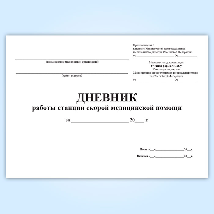 Дневник работы станции скорой медицинской помощи (форма 115/у) в Обнинске купить