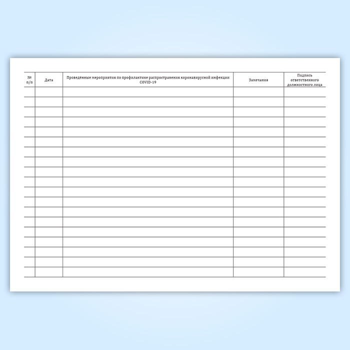 Журнал учета проведенных мероприятий по профилактике распространения коронавирусной инфекции COVID-19 в Обнинске купить