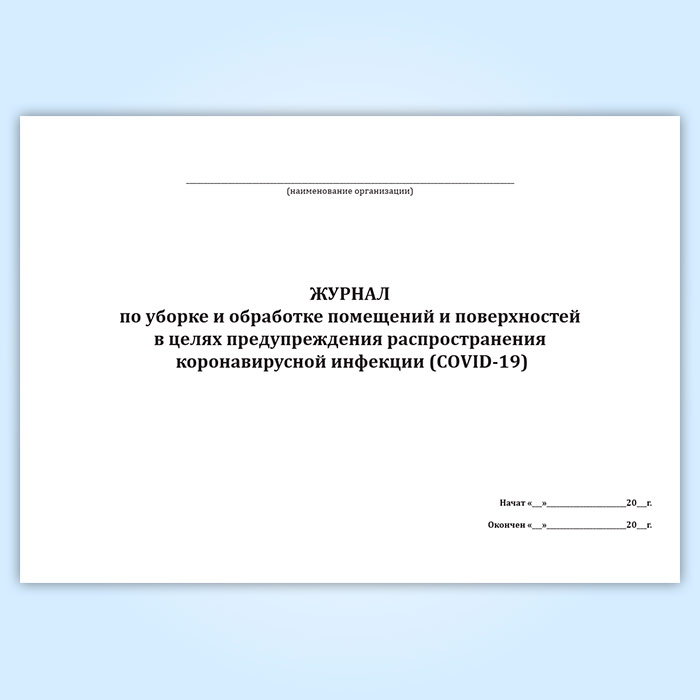Журнал по уборке и обработке помещений и поверхностей в целях предупреждения распространения коронавирусной инфекции (COVID-19) в Обнинске купить