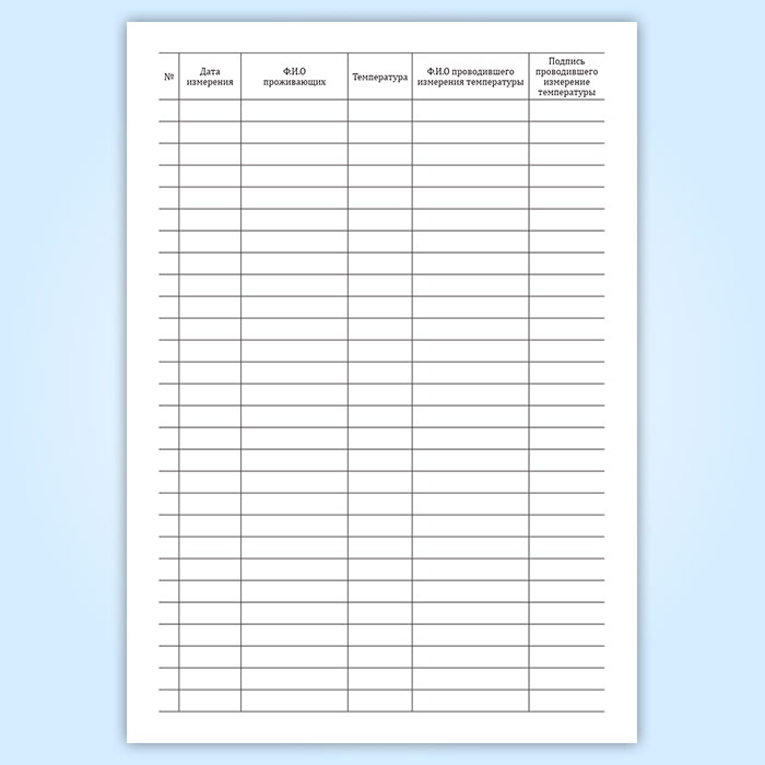 Журнал регистрации измерения температуры проживающих и служащих для профилактики коронавируса в Обнинске купить