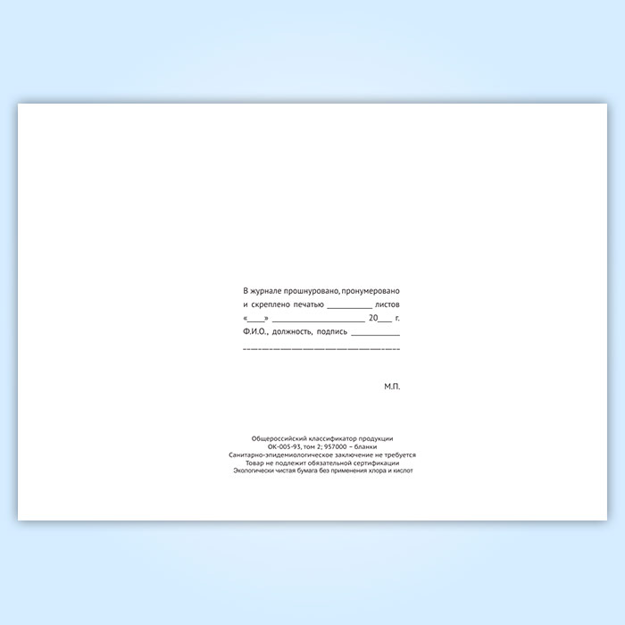 Вы получаете печатную продукцию прошнурованной и c местом для вашей печати в соответствии с действующими нормативными документами: