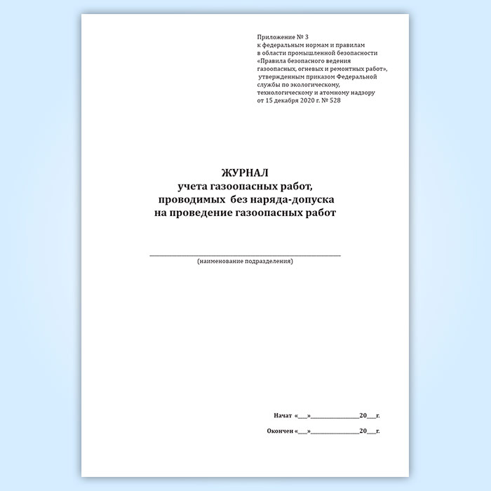 Журнал учета газоопасных работ, проводимых без наряда-допуска на проведение газоопасных работ в Обнинске купить