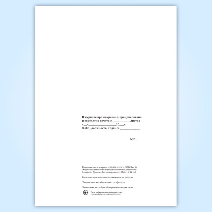 Вы получаете печатную продукцию прошнурованной и c местом для вашей печати в соответствии с действующими нормативными документами: