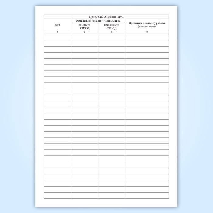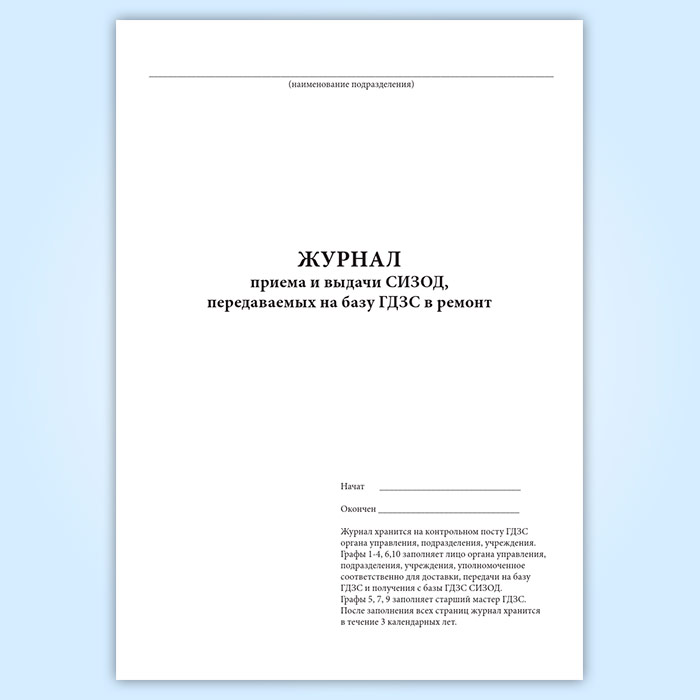 Журнал приема и выдачи СИЗОД, передаваемых на базу ГДЗС в ремонт в Обнинске купить