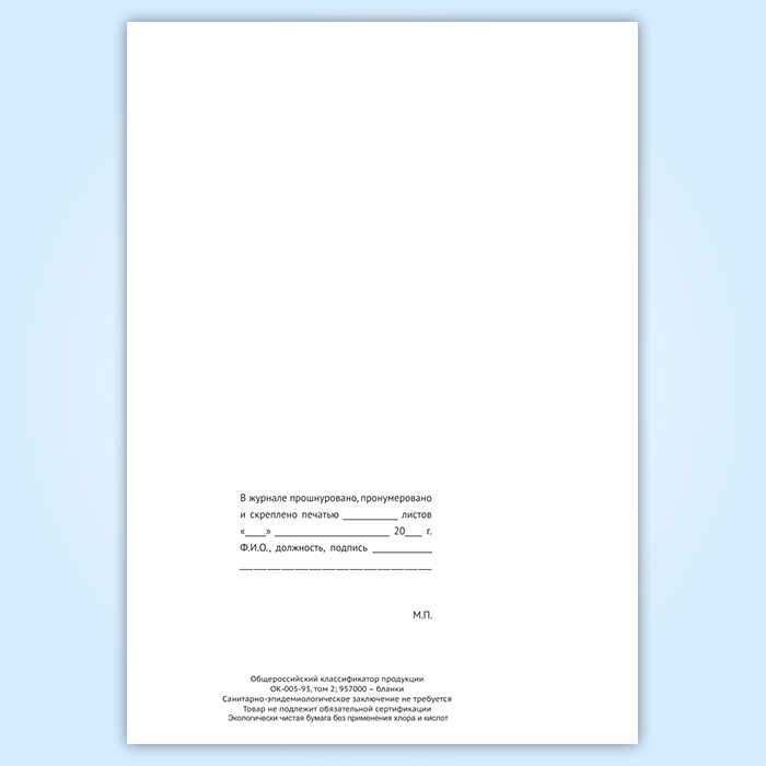Вы получаете печатную продукцию прошнурованной и c местом для вашей печати в соответствии с действующими нормативными документами: