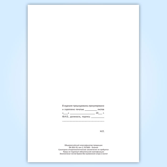 Вы получаете печатную продукцию прошнурованной и c местом для вашей печати в соответствии с действующими нормативными документами: