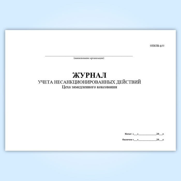 Журнал учета несанкционированных действий цеха замедленного коксования (ОПКПБ-ф33) в Обнинске купить