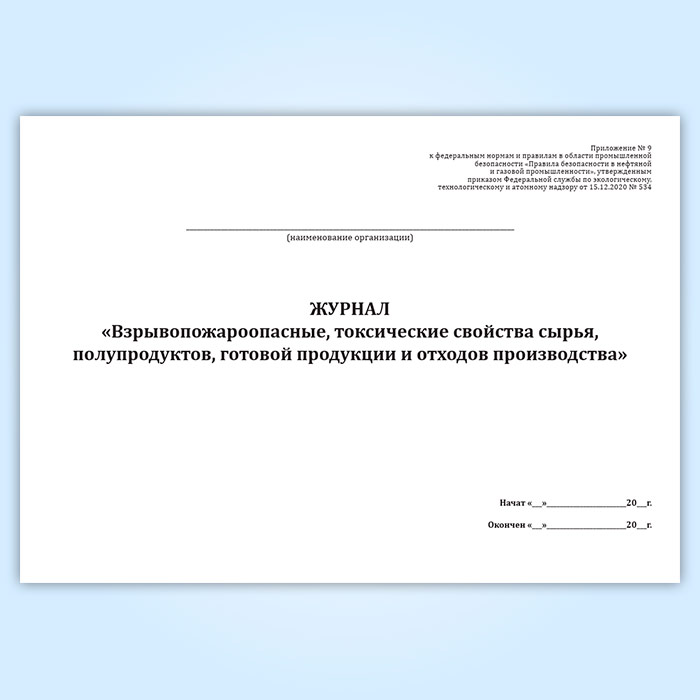 Журнал «Взрывопожароопасные, токсические свойства сырья, полупродуктов, готовой продукции и отходов производства» в Обнинске купить