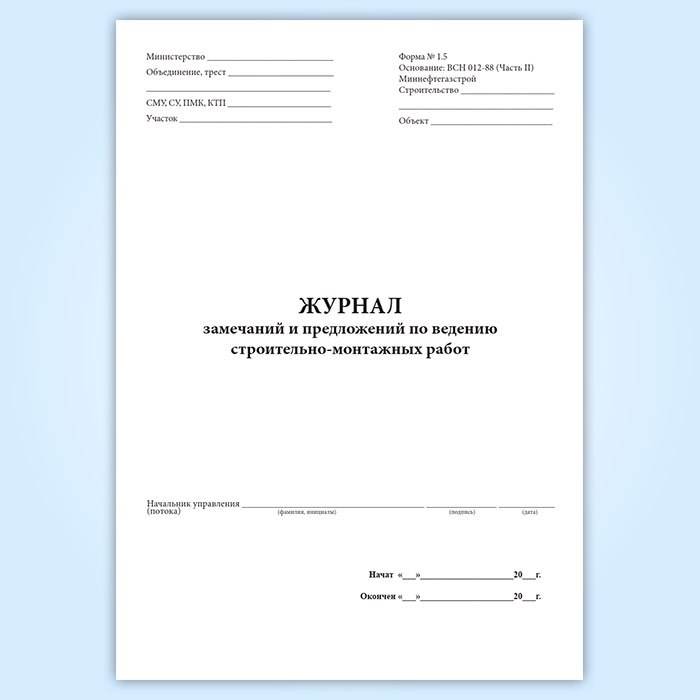 Журнал замечаний и предложений по ведению строительно-монтажных работ в Обнинске купить