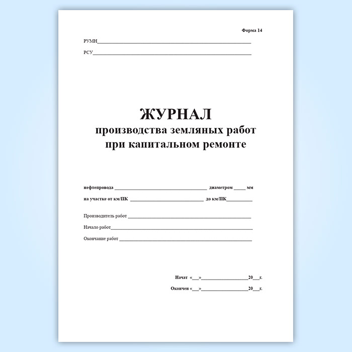 Журнал производства земляных работ при капитальном ремонте (форма 14) в Обнинске купить