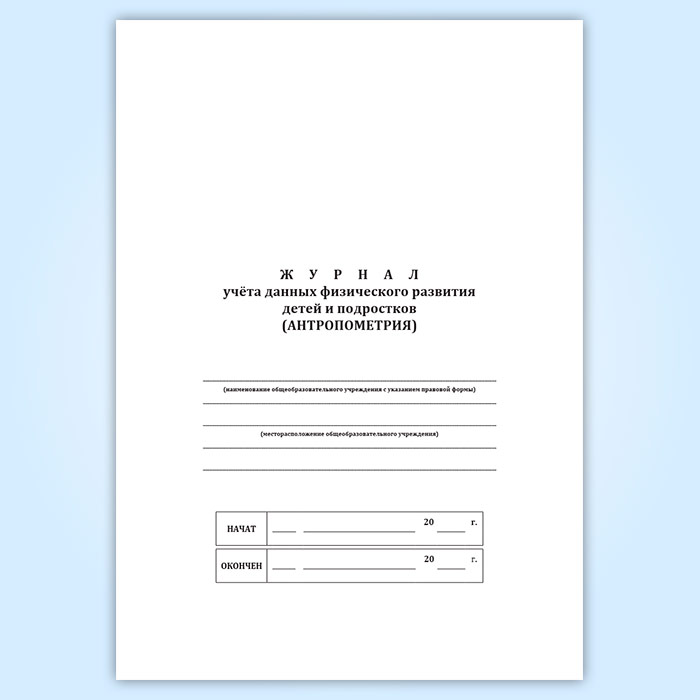 Журнал учета данных физического развития детей и подростков (антропометрия) в Обнинске купить