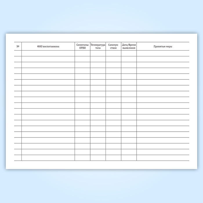 Журнал учета воспитанников с выявленными симптомами ОРВИ в Обнинске купить