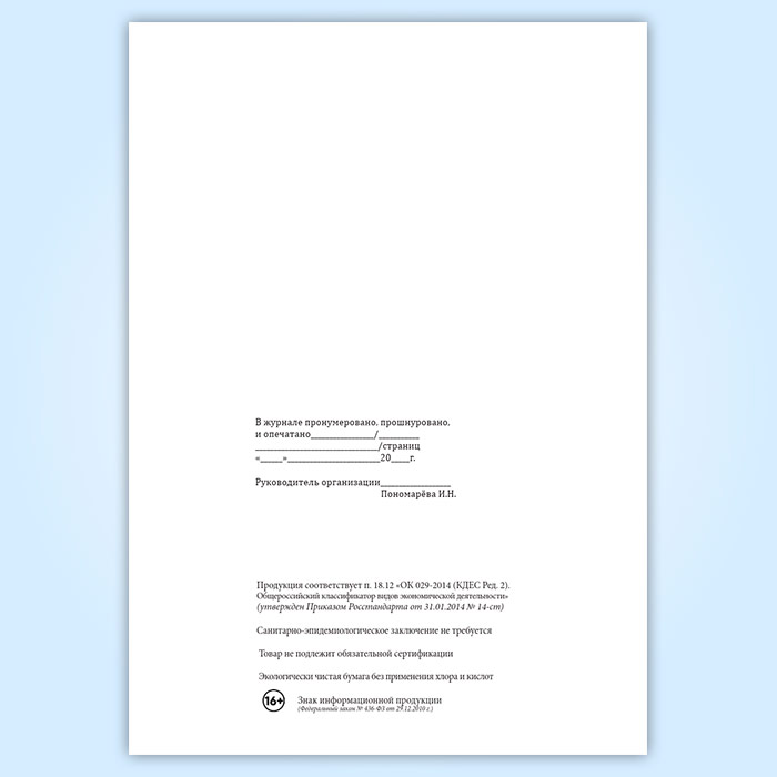 Вы получаете печатную продукцию прошнурованной и c местом для вашей печати в соответствии с действующими нормативными документами: