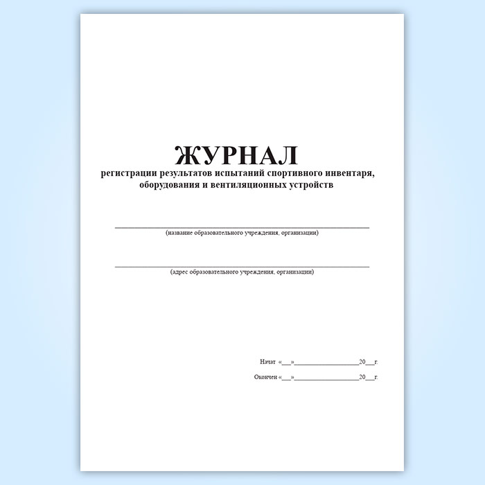 Журнал регистрации результатов испытаний спортивного инвентаря, оборудования и вентиляционных устройств в Обнинске купить