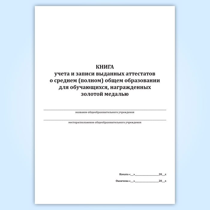 Книга учета и записи выданных аттестатов о среднем (полном) общем образовании для обучающихся, награжденных золотой медалью в Обнинске купить