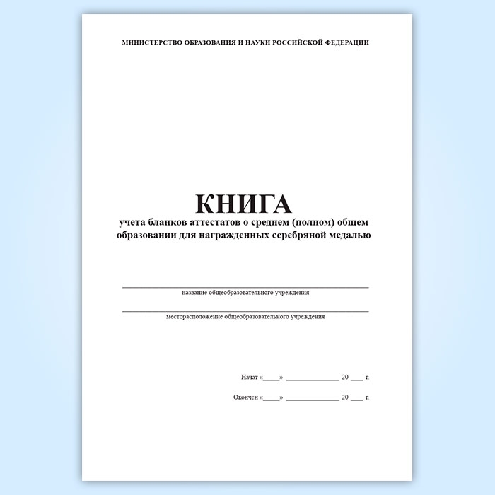 Книга учета бланков аттестатов о среднем (полном) общем образовании для награжденных серебряной медалью в Обнинске купить