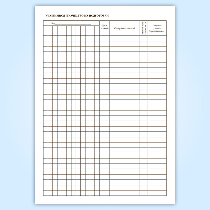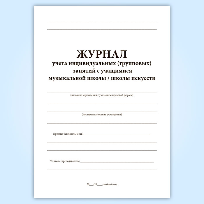 Журнал учета индивидуальных (групповых) занятий с учащимися музыкальной школы, школы искусств в Обнинске купить