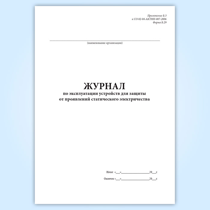 Журнал по эксплуатации устройств для защиты от проявлений статического электричества (форма Б.29) в Обнинске купить