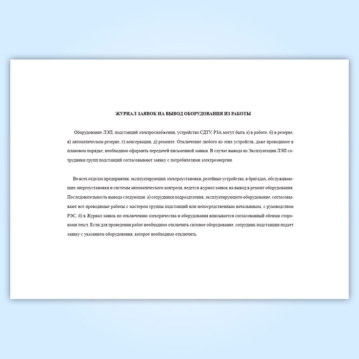 Журнал заявок на вывод оборудования из работы в Обнинске купить