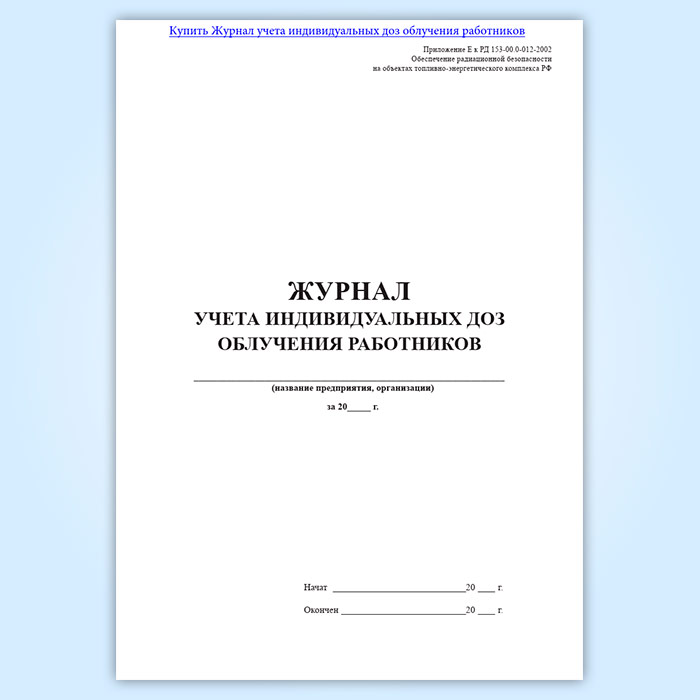 Журнал учета индивидуальных доз облучения работников в Обнинске купить