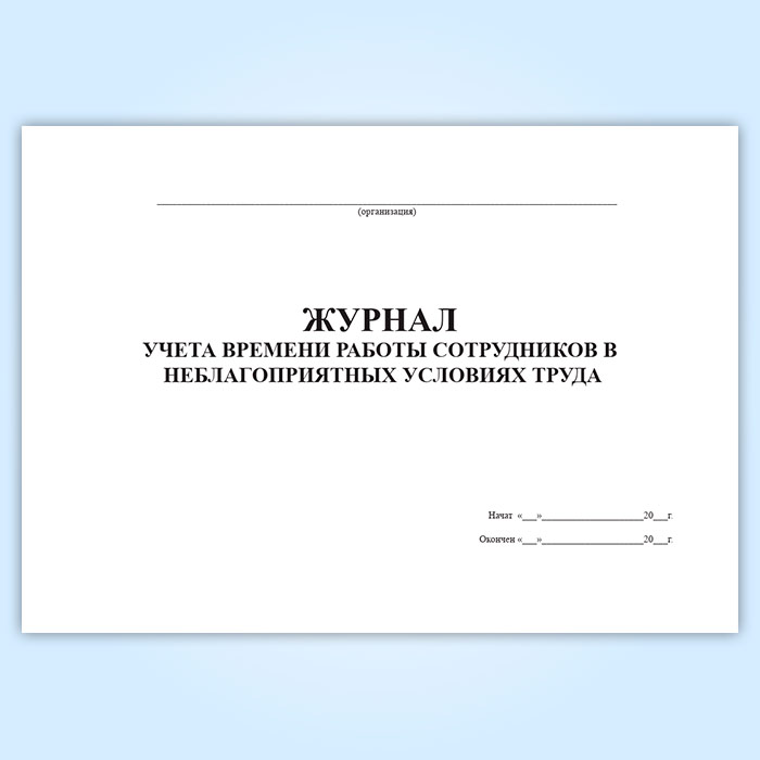 Журнал учета времени работы сотрудников в неблагоприятных условиях труда в Обнинске купить
