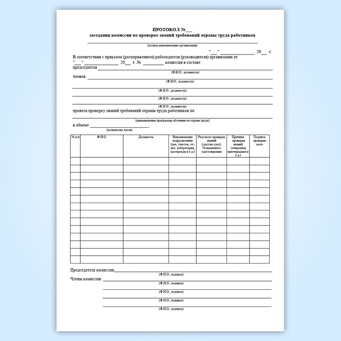 Журнал (протокол) проверки знаний правил охраны труда в Обнинске купить