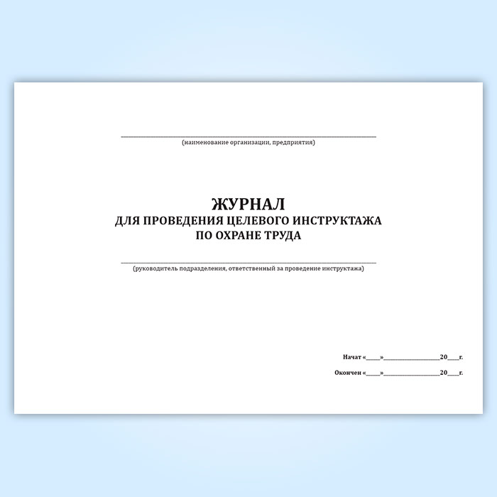 Журнал для проведения целевого инструктажа по охране труда в Обнинске купить