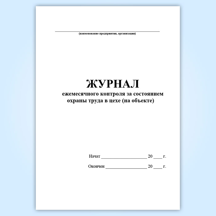 Журнал ежемесячного контроля за состоянием охраны труда в цехе (на объекте) в Обнинске купить