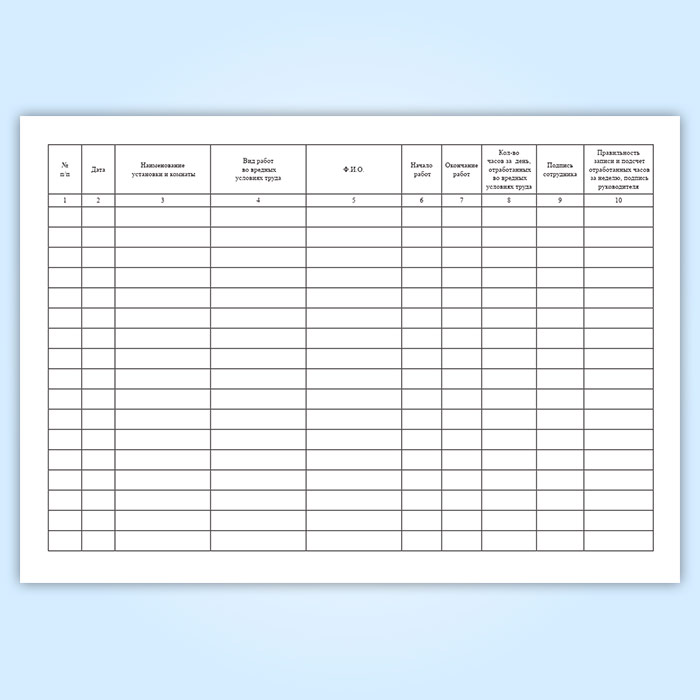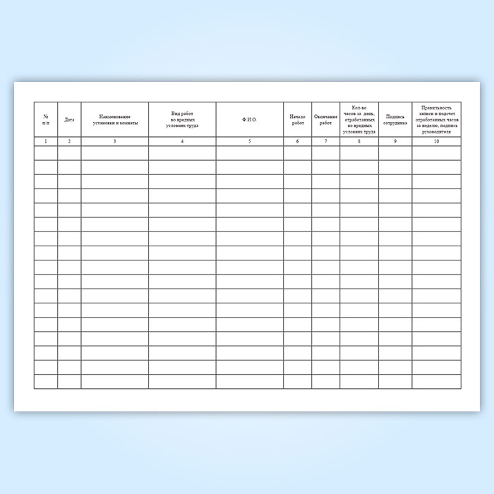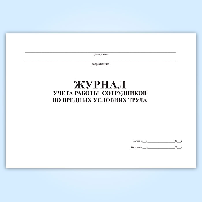 Журнал учета работы сотрудников во вредных условиях труда в Обнинске купить
