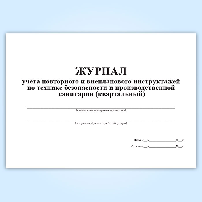 Журнал учета повторного и внепланового инструктажей по технике безопасности и производственной санитарии (квартальный) в Обнинске купить