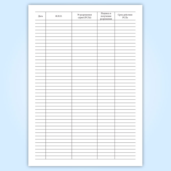 Журнал регистрации и выдачи поступающих разрешений на хранение и ношение огнестрельного оружия (РСЛа) в Обнинске купить