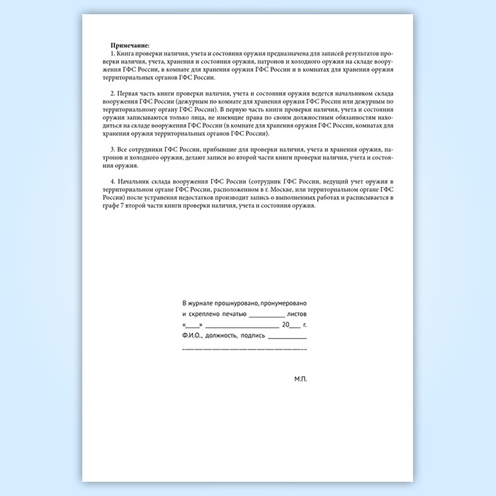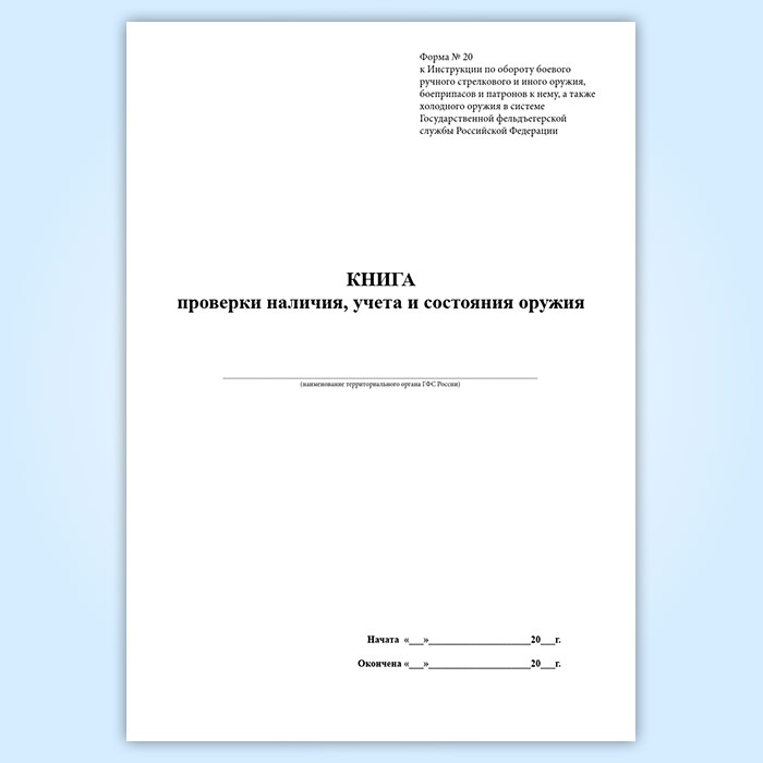 Книга проверки наличия, учета и состояния оружия (форма 20) в Обнинске купить