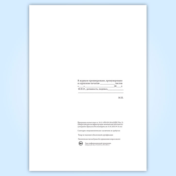 Вы получаете печатную продукцию прошнурованной и c местом для вашей печати в соответствии с действующими нормативными документами: