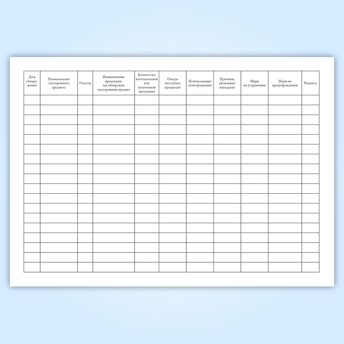 Журнал учета посторонних предметов и включений, обнаруженных в сырье, продукции на производственных участках в Обнинске купить