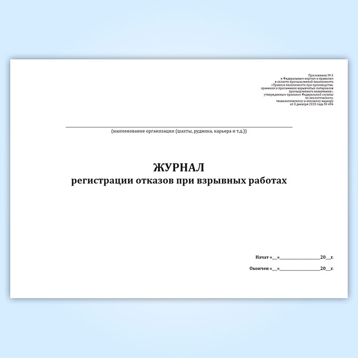Журнал регистрации отказов при взрывных работах в Обнинске купить