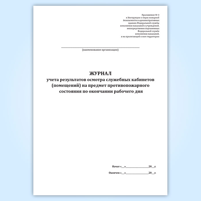 Журнал учета результатов осмотра служебных кабинетов (помещений) на предмет противопожарного состояния по окончании рабочего дня в Обнинске купить