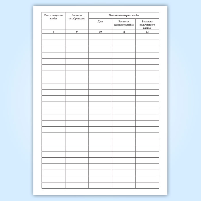 Журнал выдачи и получения калибровочных клейм в Обнинске купить