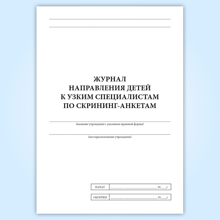 Журнал направления детей к узким специалистам по скрининг-анкетам в Обнинске купить
