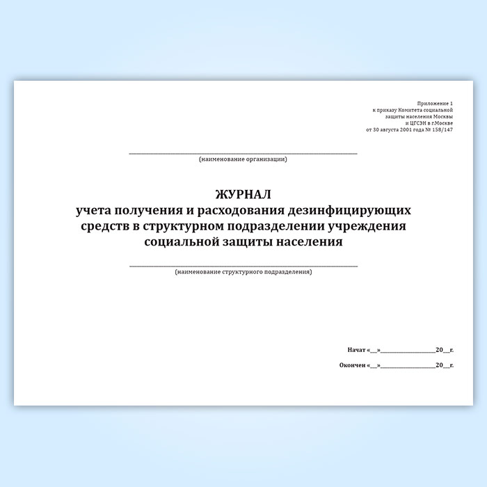 Журнал учета получения и расходования дезинфицирующих средств в структурном подразделении учреждения социальной защиты населения в Обнинске купить